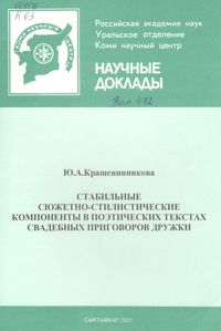 Свадебные приговоры дружки (структурно-семантический, функциональный аспекты жанра):10.01.09-фольклористика: Автореф.дис... канд.филол.наук.- Ижевск,2003.-23 с.-Библиогр.:с.22-23.