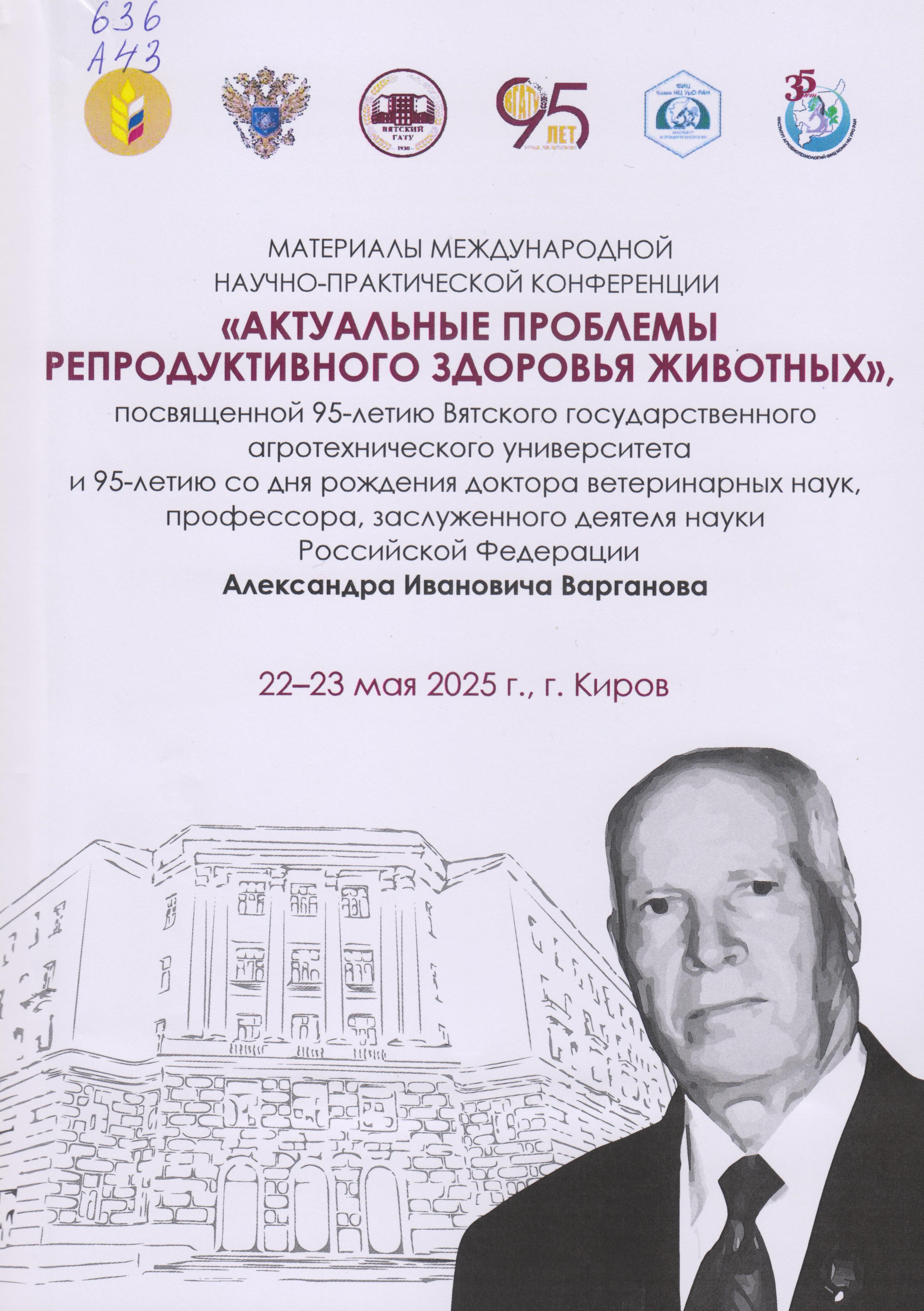 ![]() | 636/А 43 Актуальные проблемы репродуктивного здоровья животных : материалы Междунар. науч.-практ. конф., г. Киров, 22-23 мая 2025 г. / Вятский гос. агротехнологич. ун-т, Ин-т агробиотехнологий им. А.В. Журавского Коми НЦ УрО РАН. – Сыктывкар, 2025. – 423 с. : ил., табл. – Библиогр. в конце ст. Настоящий сборник научных трудов посвящён 95-летию Вятского государственного агротехнологического университета и 90-летию со дня рождения основоположника школы вятских акушеров, доктора ветеринарных наук, профессора, заслуженного деятеля науки Российской Федерации Александра Ивановича Варганова.В данном издании представлены результаты фундаментальных и прикладных исследований в области ветеринарного акушерства, физиологии и патологии репродукции животных, а также смежных научных дисциплин. |
