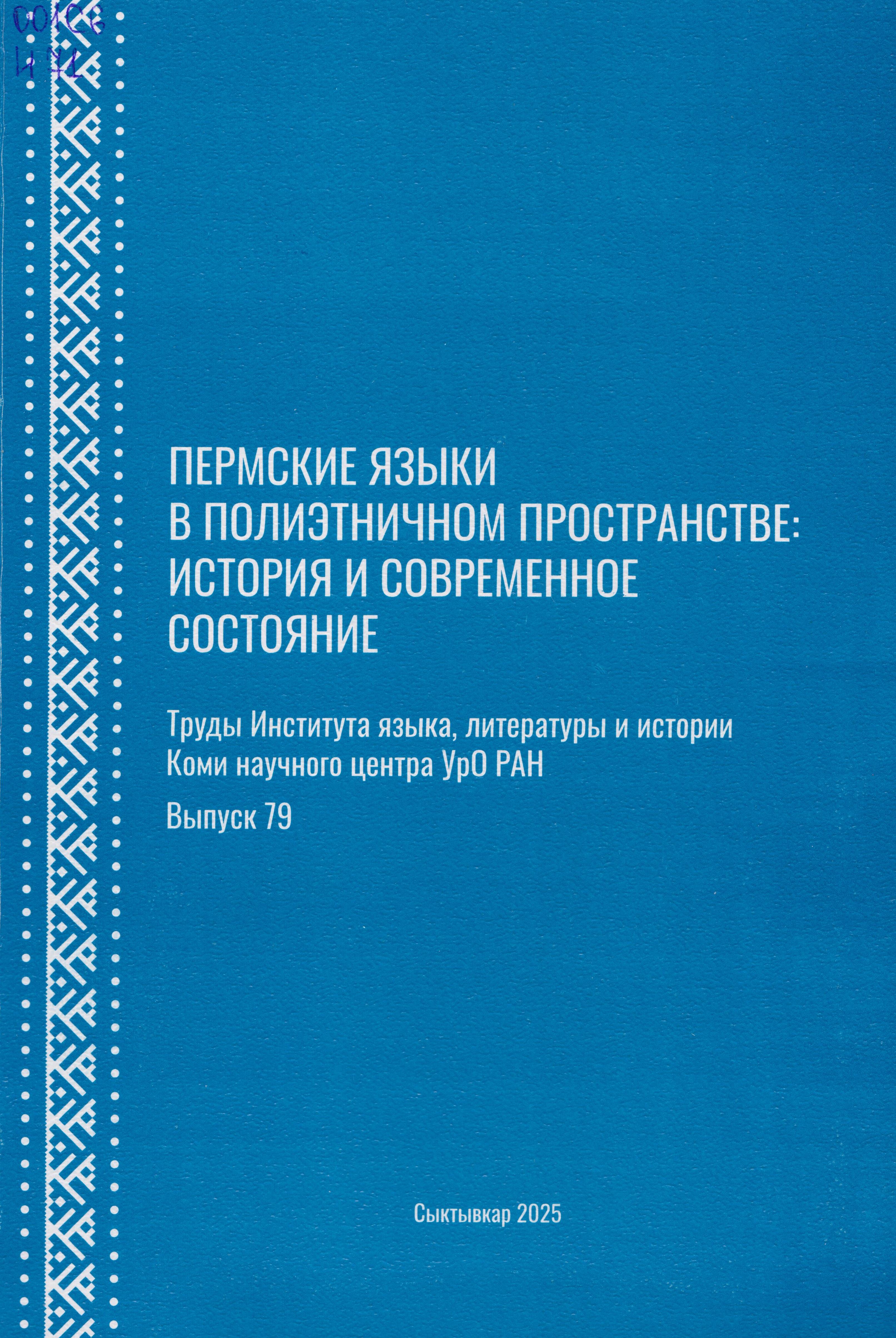 ![]() | 001С6/И 71 В сборнике представлены научные статьи лингвистов Института языка, литературы и истории Коми научного центра УрО РАН, в которых отражены результаты, полученные в ходе выполнения научно-исследовательской темы «Пермские языки в лингвокультурном пространстве Европейского Севера и Приуралья» (2021-2025). Работа содержит исследования по актуальным проблемам современного коми и пермского языкознания. |